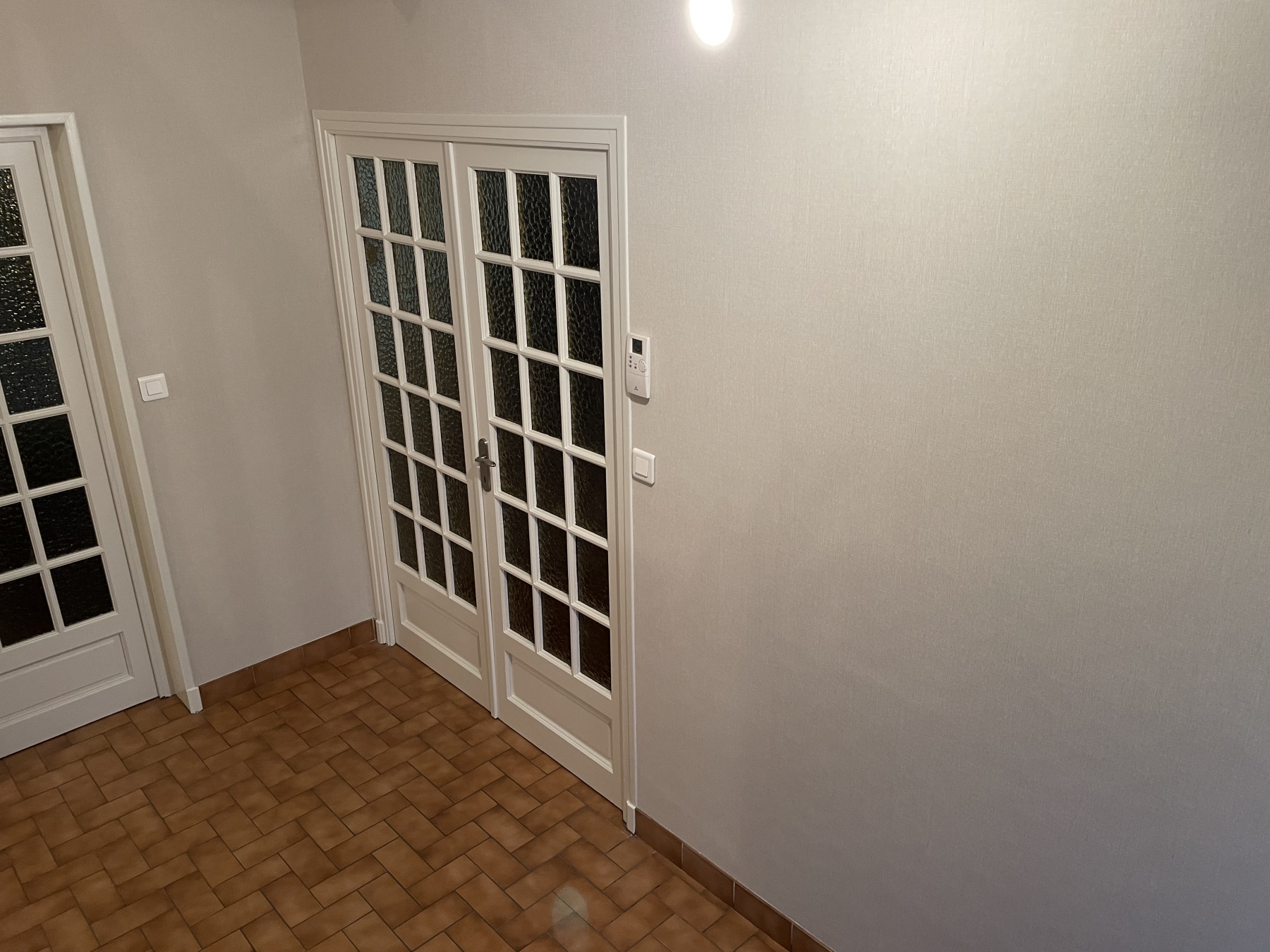 Décoration entrée et cage d'escalier Ploumagoar Relooking d'un plafond en lambris, et pose papier peint sur les murs.