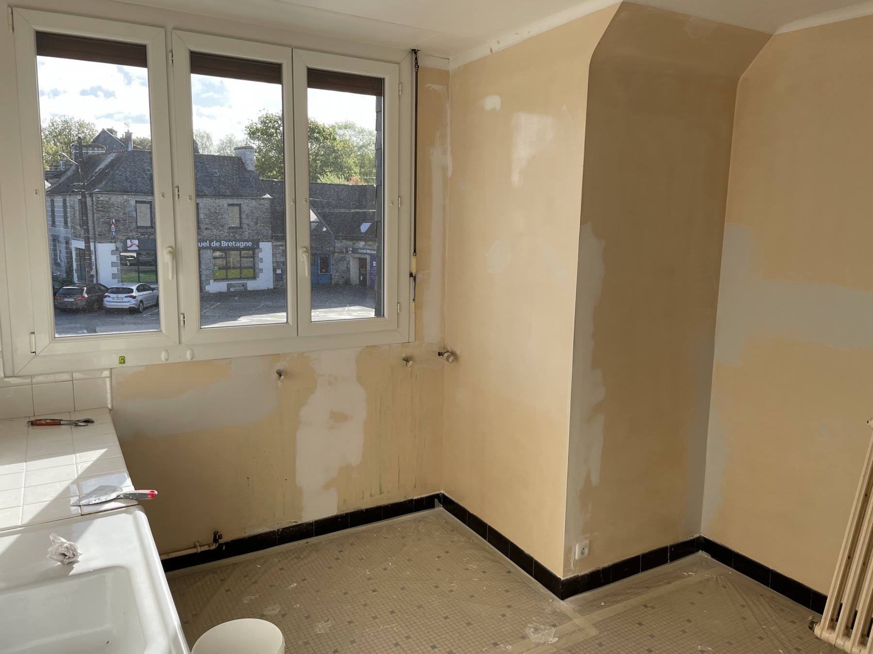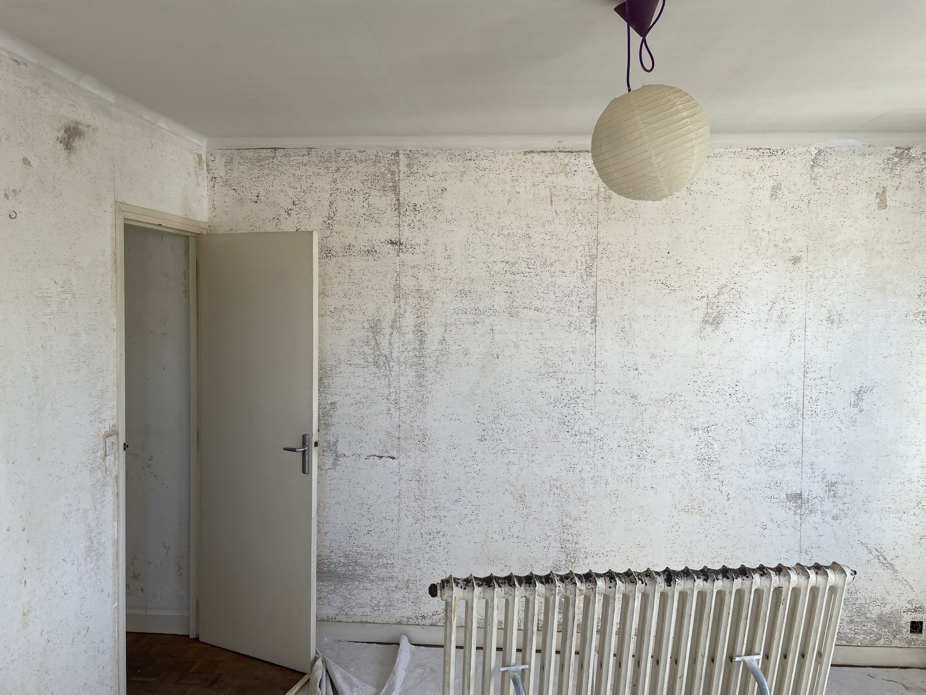 reprise des murs et des plafond avec un ratissage suivie d'un papier décoratif.