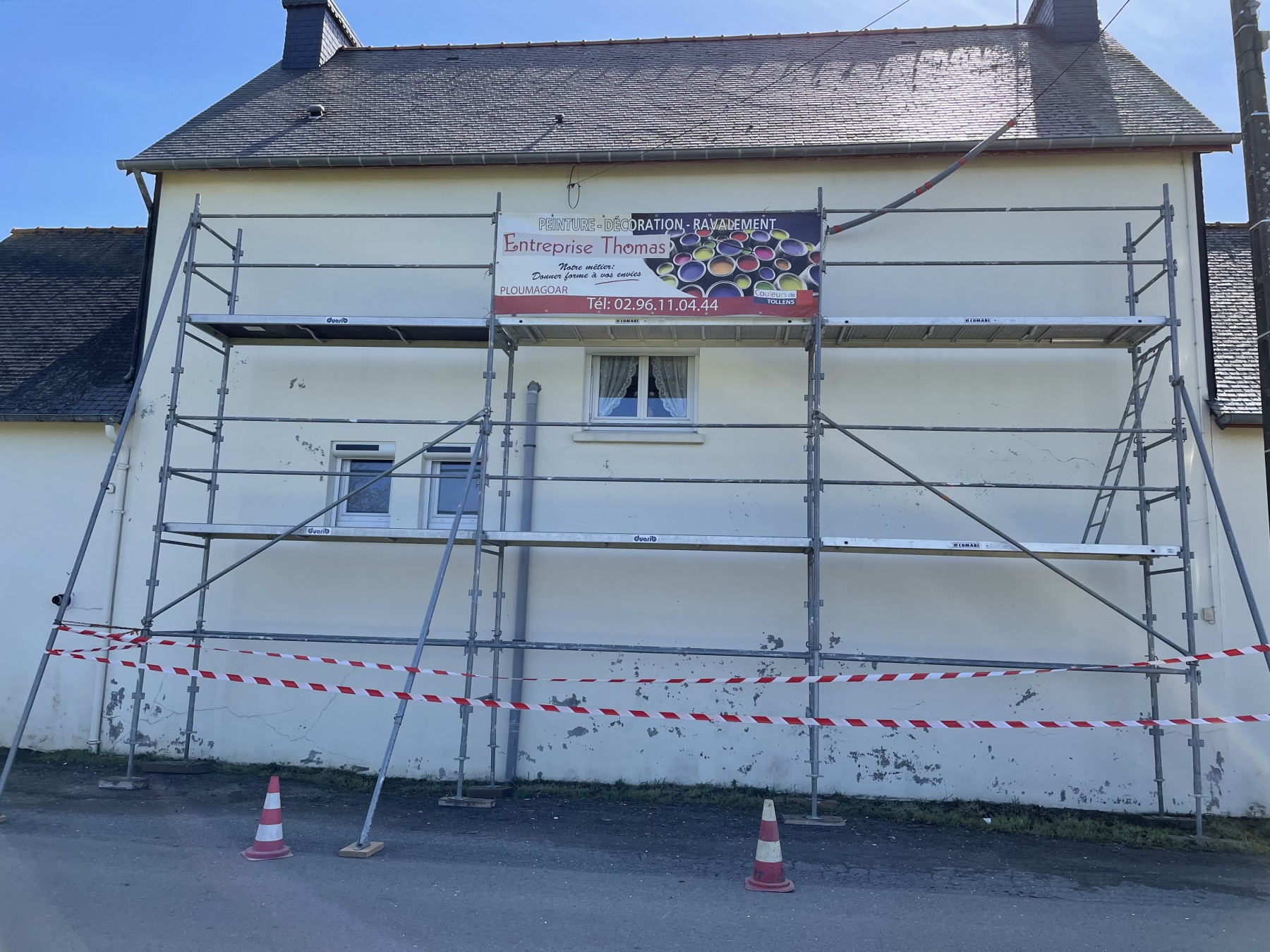 Ravalement d'une maison complète sur Lannion (avant/après). Nettoyage, Reprise des fissures, dessous de toit, peinture spécial sur appuis de fenêtre.